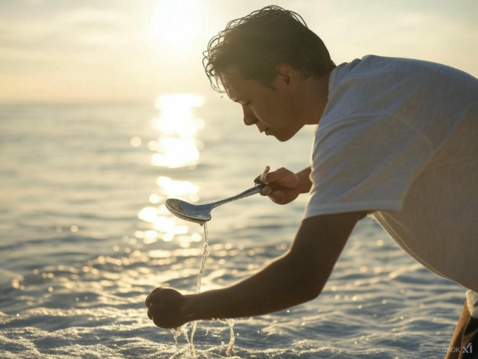 Imagine standing by the shore, holding a tiny spoon, and attempting to...